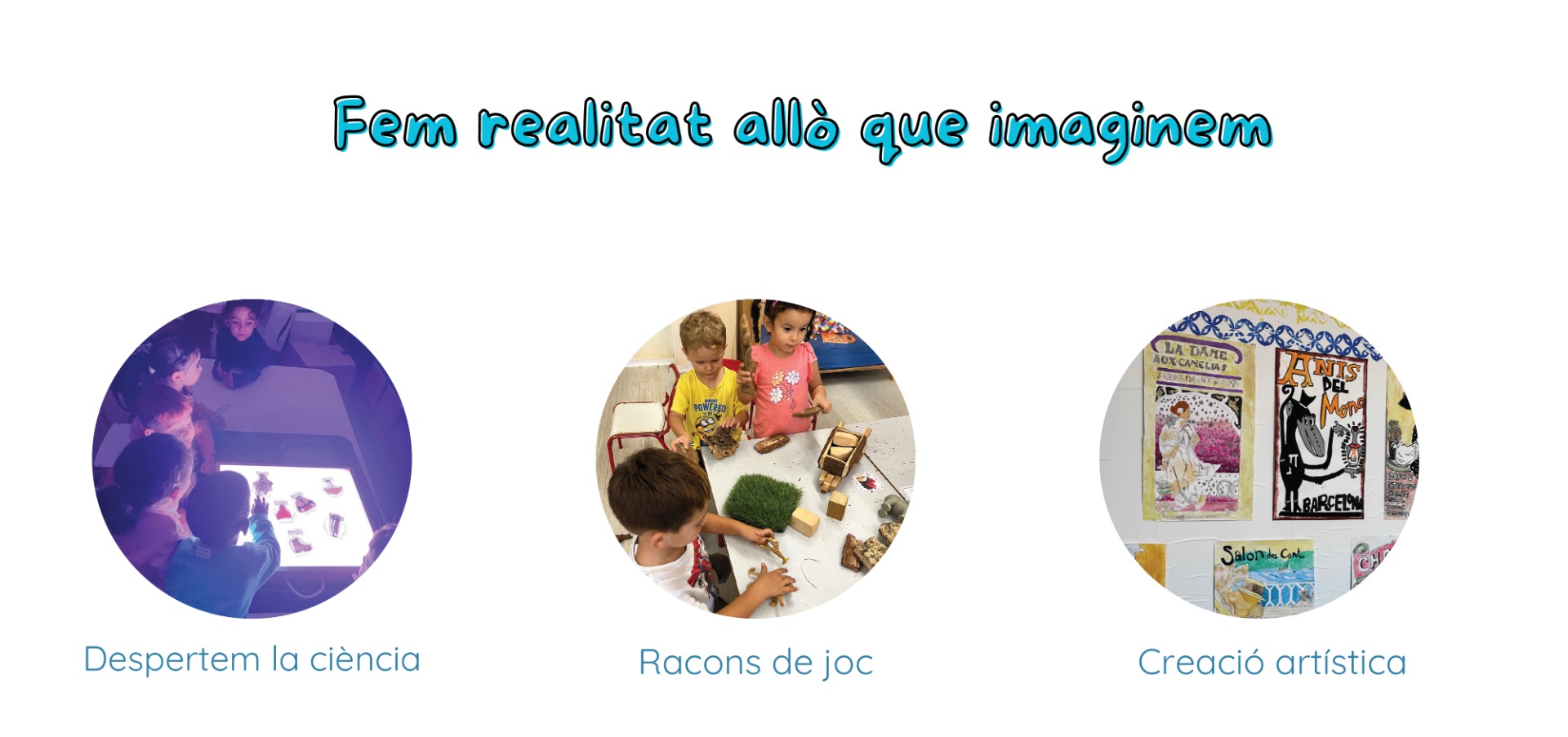 Despertem la curiositat científica i l'esperit creatiu a través de racons de joc, experimentació i creació artística. Creiem que la imaginació i la iniciativa són motors fonamentals per aprendre i per gaudir del procés educatiu.